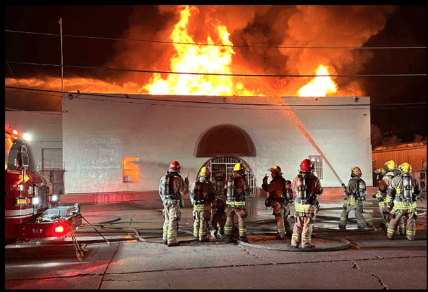 A four-alarm fire broke out late September 23rd at a popular downtown Tulsa restaurant that connects to several apartments and another pub and restaurant. Fire crews worked from Saturday into Sunday morning to ensure complete extinguishment of hot spots. Three district chiefs, 12 fire trucks, and over 50 firefighters responded and extinguished the fire. The fire originated at Lowood around 5 p.m. and spread quickly, eventually erupting through the roof.