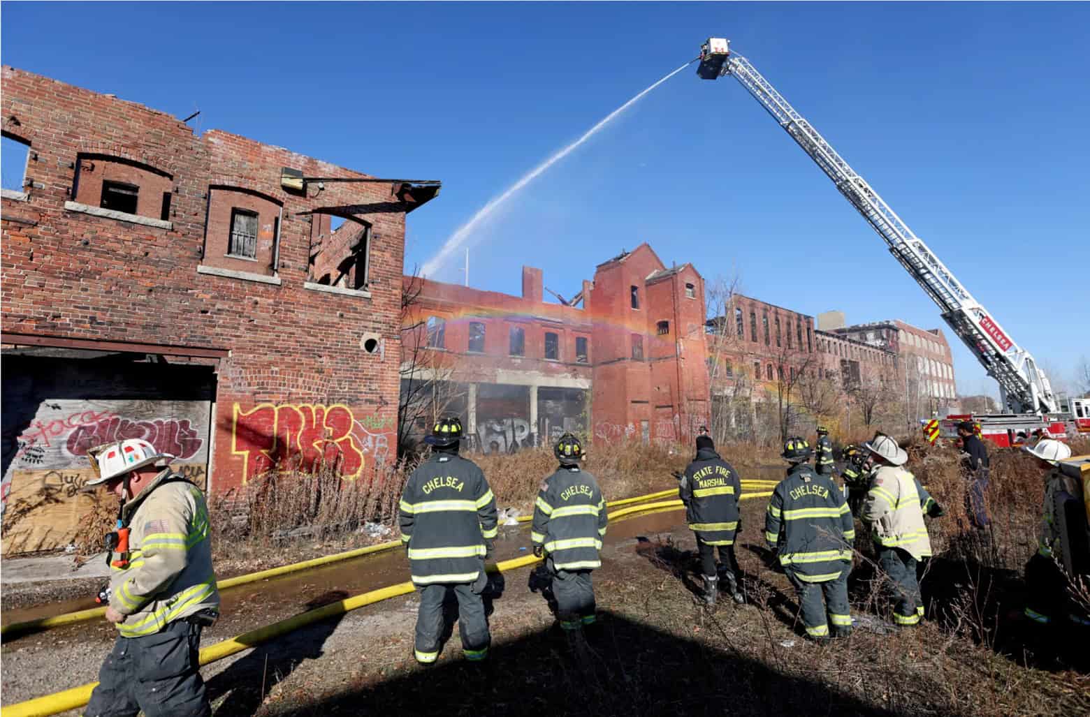 On Monday morning, November 18th, a massive fire engulfed a vacant mill building in Chelsea, MA. Over 100 firefighters from surrounding communities helped extinguish the blaze. The fire erupted at the abandoned Forbes mill on Crescent Avenue around 12:30 a.m. After several hours, the roof and several floors collapsed down to the basement. The Fire Chief described the building as hazardous and barricaded the area. By 6 a.m., firefighters had controlled the flames but continued addressing hotspots.