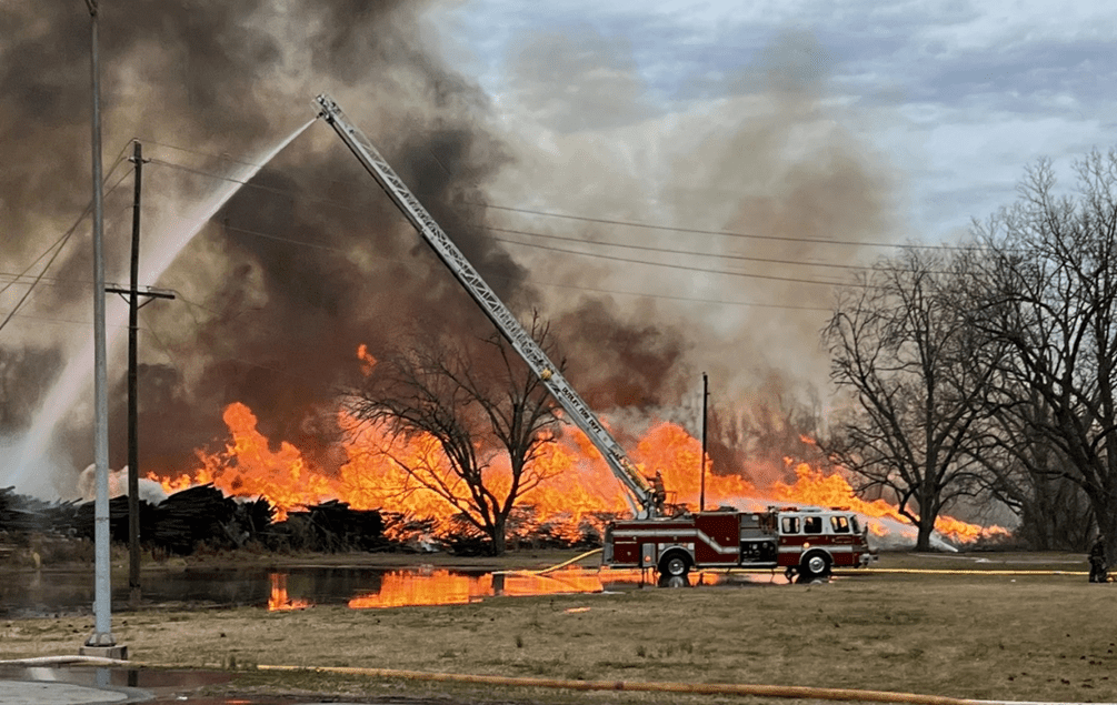 Early morning on February 11th, a fire broke out at a Wayne County, North Carolina industrial facility with smoke visible for over thirty miles. A passerby saw the fire and told dispatchers the flames were three stories high. National Salvage and Service Corporation, the facility owner, has performed railroad track removal and demolition since 1980. The 100-acre facility recycles railroad ties coated with creosote, a wood preservative that causes large amounts of smoke when involved in a fire. A stiff breeze, with gusts over 13 mph, helped disperse the smoke. As the fire spread, 27 fire departments arrived at the scene.