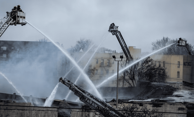Image capturing the efforts of first responders as they worked to put out the flames.