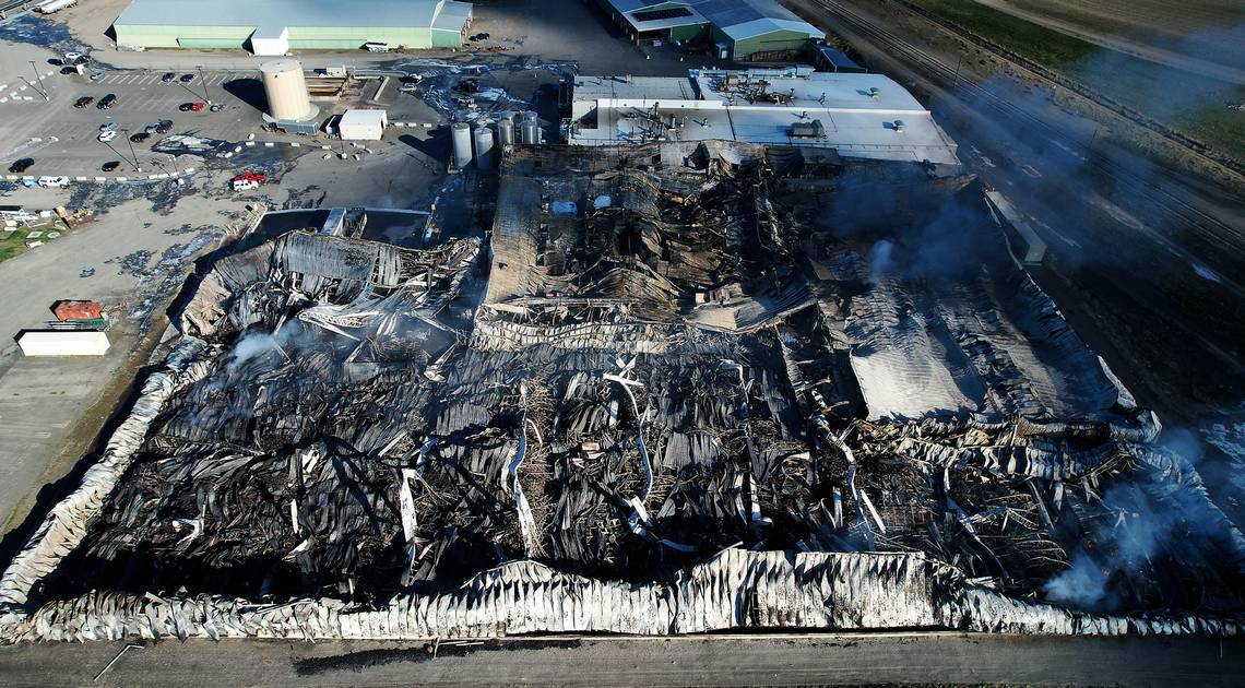 The county fire district was notified by an employee 911 call. Seven people were transported to local hospitals for injuries, were treated, and later released. Fire authorities reported only one fire hydrant being available. Mutual aid was provided by surrounding departments and water was trucked in. There were also reported problems with the on-site suction tank and fire pump supply. It is assumed that the boiler explosion damaged sprinkler piping and impaired automatic fire protection. The loss is still under investigation.