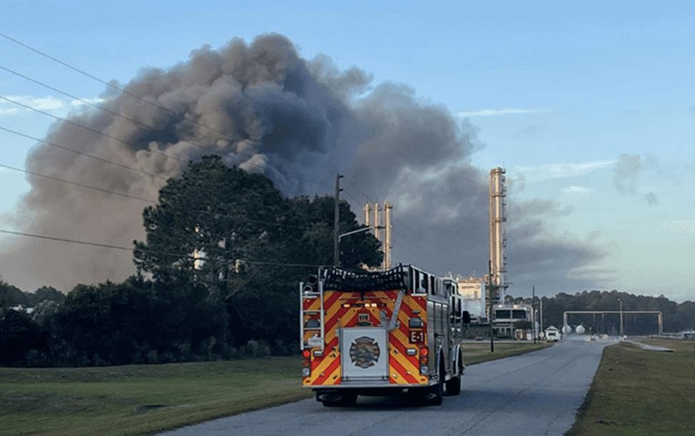 Explosions and a large fire erupted on November 7th at a chemical plant near the port in Brunswick, Georgia. The fire sent a large plume of thick smoke into the air. In addition to firefighters, Hazmat (hazardous materials) crews from Savannah, Georgia and Jacksonville, Florida are among the host of outside agencies who have converged at the port to assist local firefighters with the incident. The plant and 100 households within a 1-mile radius of the plant were evacuated. All within three miles of the plant were advised to shelter in place.