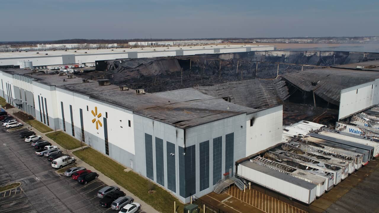 A large fire broke out in a 1.2 million ft2 Walmart e-commerce distribution center (DC) in Plainfield, Indiana around noon on Wednesday, March 16, 2022. The fire reportedly started on a third-floor mezzanine storage area with the local county communications center notified at about 11:57 AM. The fire department was training nearby and responded to the site within 3 minutes. Sprinkler protection was reported as operating upon fire department arrival.