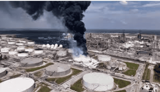 An investigation was initiated to see what the source of the ignition was. A worker indicated that the flammable liquid, naphtha, caught fire after leaking from the storage tank area. Naphtha is a petroleum feedstock used to refine gasoline. The Louisiana Department of Environmental Quality is working with Marathon to perform air monitoring at the facility and in the neighboring area. Fortunately, there were no reported injuries to employees, but one rescue worker required treatment for heat stress.