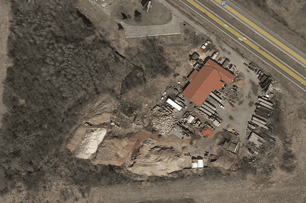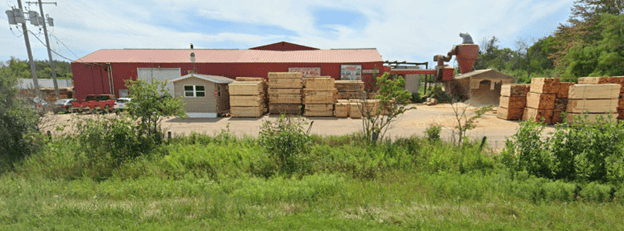 The fire reportedly started in a large pile of mulch stored outdoors and grew quickly, spreading to stacks of wood pallets and then extending into two of the buildings on site.