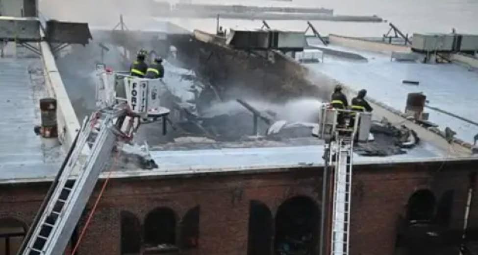 A five-alarm fire broke out in a 150-year-old waterfront warehouse in Red Hook, Brooklyn, NY, on the evening of Wednesday, September 17. Crews arrived within three minutes and mounted an exterior attack, including a fireboat operation and drone-assisted hotspot searches. The roof and fourth floor collapsed, and flames reignited within 24 hours, likely due to large timber construction, retained heat, and winds. The building, once a shipping complex, later home to artists/retail, stored a significant volume of artwork; many pieces suffered fire, smoke, and water damage. Two firefighters sustained minor injuries; no civilian injuries were reported.