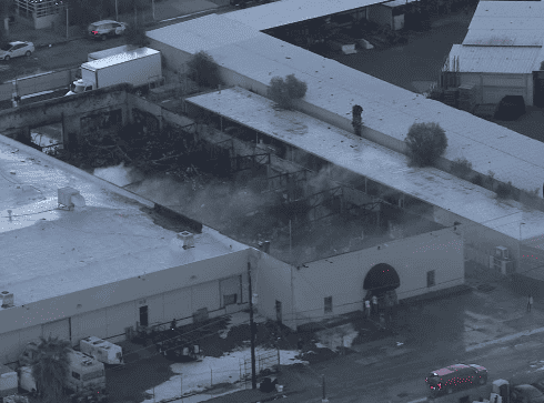 On October 18th, a large fire broke out at a Phoenix warehouse.  Over 70 firefighters responded to the three-alarm fire on 13th Avenue and Roosevelt just after midnight.  Once on scene, they found flames and smoke billowing out of the building.  Firefighters adopted a defensive strategy from the outside of the building due to the uncertain integrity of the bowstring truss roof. The blaze was quickly upgraded from a single-alarm to a three-alarm fire.