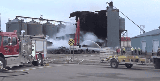 The grain elevator was not in use at the time of the fire and the cause is under investigation by officials. Fortunately, there were no reported injuries, and although a smoldering fire started across the street, no other structures sustained damage. By Monday morning, firefighters extinguished all hot spots. Officials took a precautionary step of calling off all schools and local businesses until they were sure it was safe to resume.