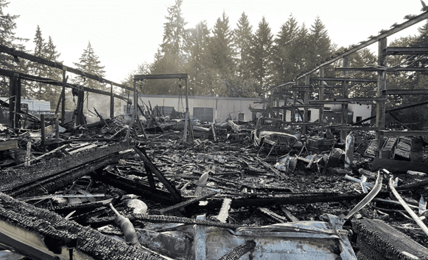 Late Tuesday night, on June 7th, flames tore through a large industrial structure in Clark County, Washington, destroying at least seven of twelve units. Employees reported the smell of smoke and called 911. When rescue workers arrived, flames had already consumed the building, and they promptly upgraded the fire to a two-alarm fire.
