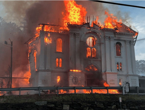 Lightning strike caused a fire at this historic 160 year old church located in Massachusetts.