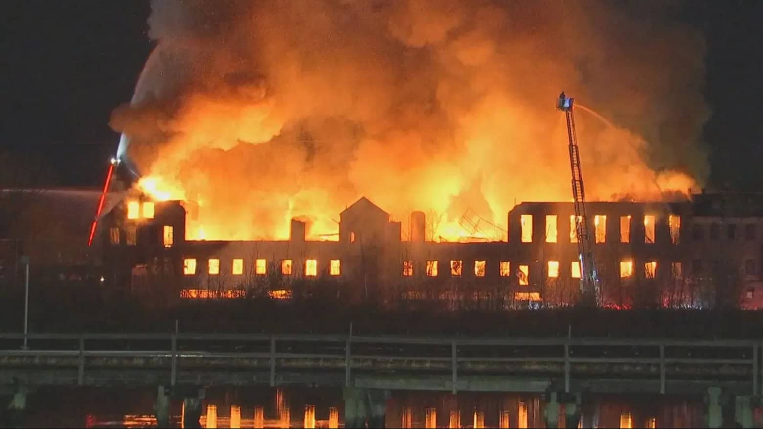 Vacant Warehouse Fire in Chelsea, Massachusetts Sends Flames Soaring into the Sky